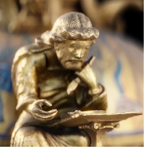 Cette œuvre rare appartient à la production dite « mosane », regroupant des ateliers actifs le long de la vallée de la Meuse, mais aussi dans le Nord de la France et jusqu’en Hollande. Exécutée dans la seconde moitié du XIIe siècle, son décor associe des émaux très représentatifs de la technique développée dans ce contexte et des figures en ronde-bosse. Le répertoire iconographique mêle la représentation des quatre évangélistes à des scènes issues de l’Ancien Testament, préfigurant la Crucifixion ou évoquant le thème de la Rédemption.
